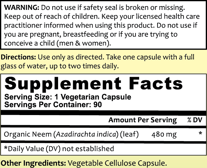 Neem Leaf has been used internally for thousands of years as nutritive support for the immune system and because it is rich in antioxidants. As a panacea herb, Neem Leaf is also reputed to provide nutritive support for liver health, healthy bile flow, digestive health, blood glucose levels and healthy, radiant skin from the inside out.